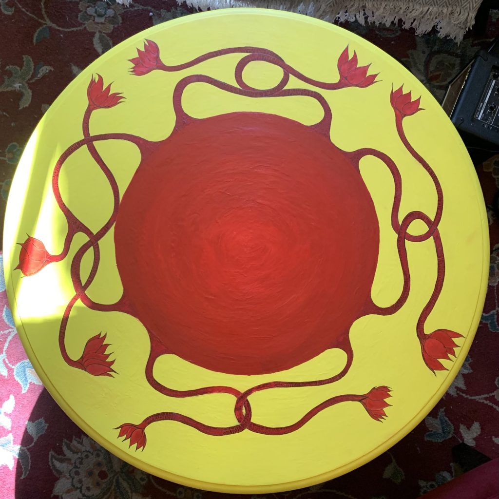 Home Art Living Sun Living Sun By Martin Rae Veil - August 6, 2025 65 ________________________________________________________________________ acrylic and watercolor on wooden coffee table 7 comments